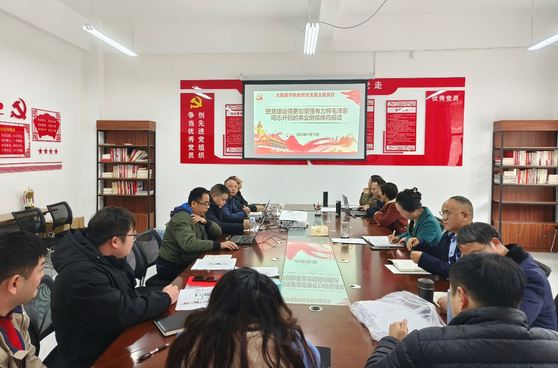 本网讯(大数据学院 文/图 王喜宾)1月15日下午,大数据学院教师党支部在党员活动室开展“把党建设得更加坚强有力 将毛泽东同志开创的事业继续推向前进”主题党日活动。支部书记杨楠主持,支部党员参加会议。