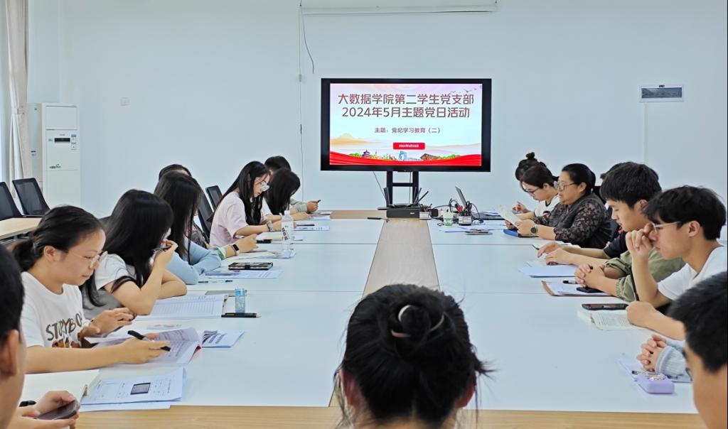 本网讯(大数据学院 文/刘浩男 图/赵金美)5月23日,大数据学院第二学生党支部在睿知楼510会议室开展“党纪学习教育”主题党日。支部书记孙秋韵主持,支部全体党员参加,发展对象列席。