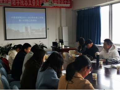 本网讯(保卫处,蔡运刚图/文,程超 审核)2022年3月3日中午,在行政楼综合楼十一楼外国语学院,保卫处处长和各科室负责人同外国语学院党总支书记、副书记及学生科相关老师面对面座谈,共同交流校园及学生安全工作。