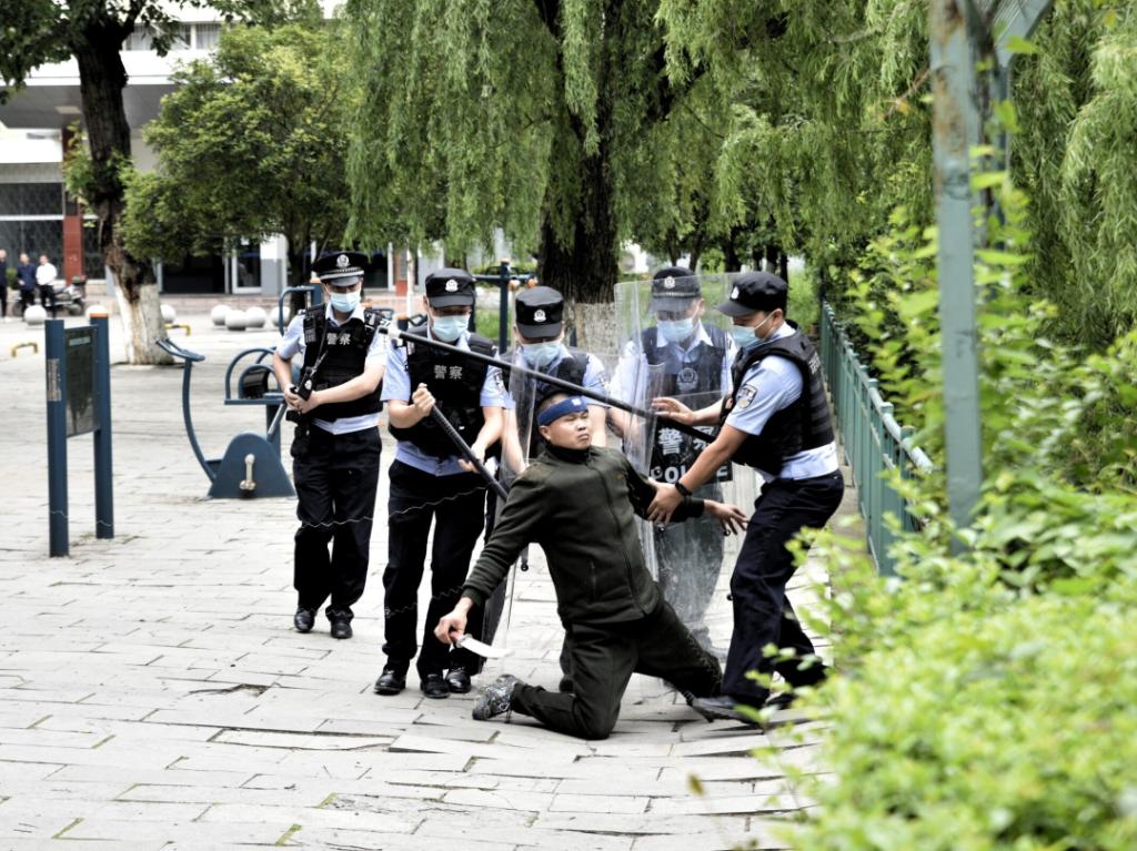 场景二:持刀“歹徒”进入校园意图挟持学生演练现场