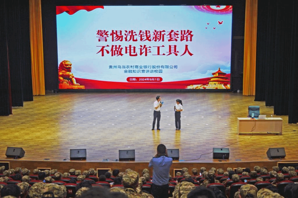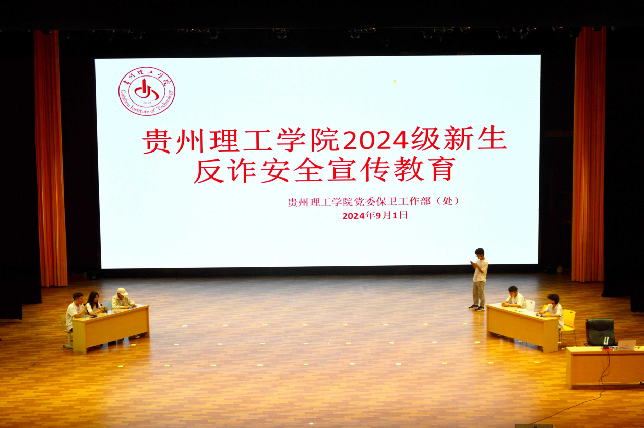 贵安公安局交警支队曾庆波政委、宣教中心负责人周洪波以真实案例为引,深入剖析诈骗手段,传授防范技巧;银行代表则就金融安全知识进行讲解,帮助新生树立理性消费观。大学生安全教育协会通过自编自导的小品《攀比》生动的讲述了被诈骗的过程,再通过互动问答等形式加深了对反诈知识的理解。