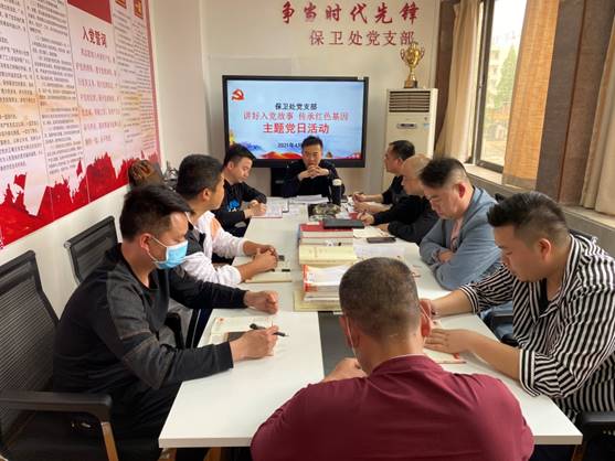 接此通知后,保卫处支部高度重视,于4月20日当天召开支委会,研究主题党日开展的相关事宜。会议决定,此次主题党日定于4月23日(周五)下午开展,由支委程超、蔡运刚、钟小勇3人分别讲述本人入党故事。同时对会议室准备、会议通知,及新闻稿、开展情况报告等上报资料撰写等任务进行明确分工。