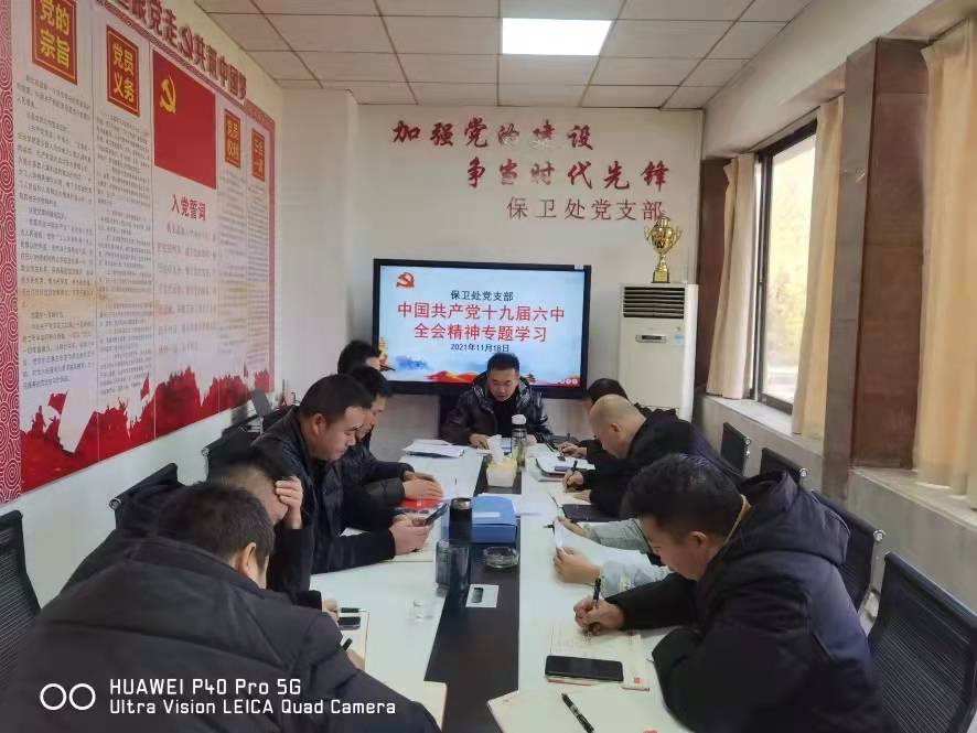 (保卫处钟小勇图/文)11月18日下午,保卫处党支部组织全处人员专题学习研讨《中共中央关于党的百年奋斗重大成就和历史经验的决议》(以下称《决议》)。专题学习会上,全处人员共同学习了《决议》全文,随后相关同志先后作学习交流发言。党支部书记、保卫处处长程超强调,作为学校保卫工作部门,一定要提高政治站位,深入学习和领会党的十九届六中全会以及《决议》的重大意义、精神实质和丰富内涵;一定要毫不动摇的加强支部党的建设,全面从严治党,为学校安保工作提供坚强政治保障;一定要牢记全心全意为民服务、为师生服务的宗旨,围绕服务学校中心工作,服务师生“两个服务”,不断增强师生安全感、幸福感;一定要积极响应中央号召,敢于斗争、敢于创新,埋头苦干,为学校“十四五”规划目标任务顺利推进提供坚实安全保障。部门全体教职工一定要将学习、贯彻全会及《决议》精神作为当前一项重要政治任务完成好、落实好。