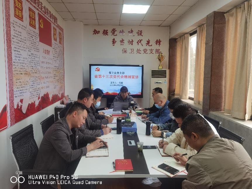 为深入学习贯彻省第十三次党代会精神,5月20日下午,保卫处党支部书记程超为部门全体职工宣讲省第十三次党代会精神。