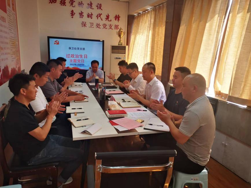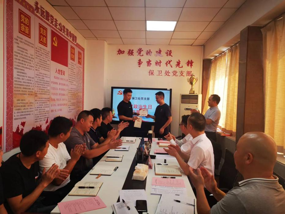 本次活动主要议程为集中学习《中国共产党章程》《习近平总书记关于安全生产重要指示和重要论述》,全体党员重温入党誓词,向过“政治生日”的党员赠送生日贺卡和礼物,过“政治生日”的党员分享自己的入党初心和工作历程,其他党员同志作交流发言,最后高勇副书记对保卫处全体党员同志提出要求和希望。