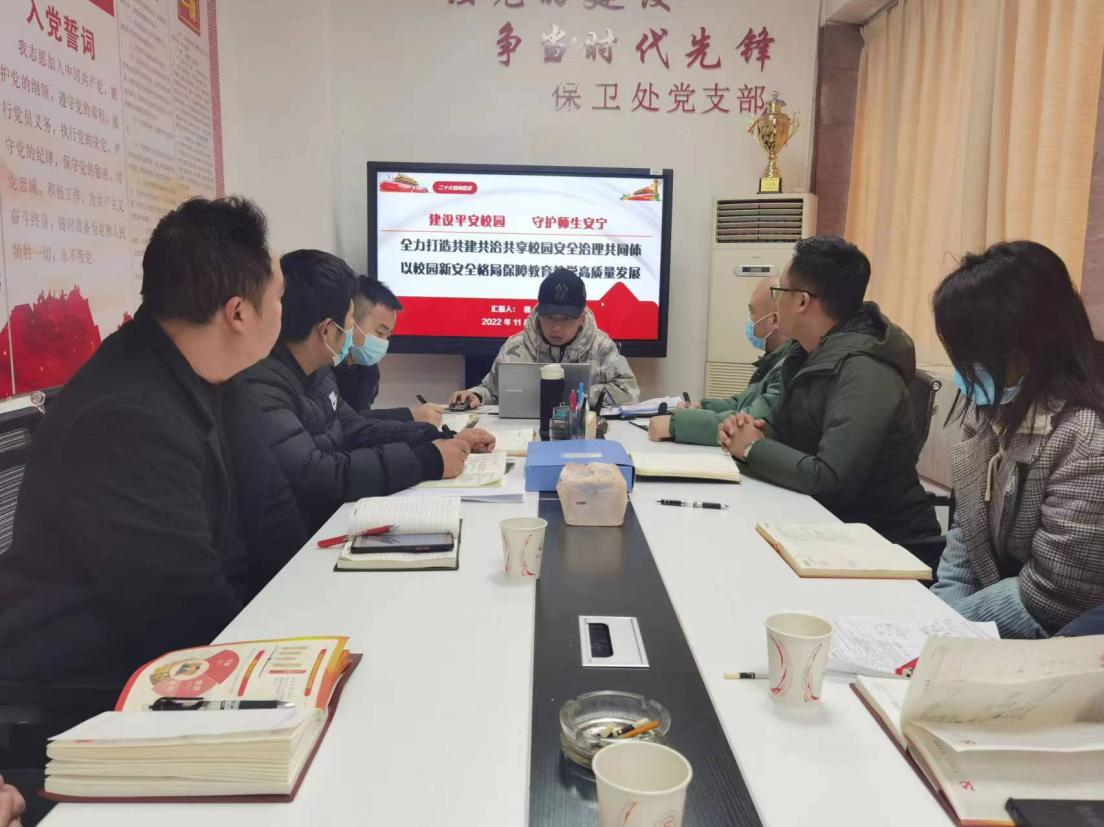 12月1日下午,保卫处党支部召开了党的二十大精神宣讲会,党支部书记程超作《建设平安校园 守护师生安宁,全力打造共建共治共享校园安全治理共同体 以校园新安全格局保障教育教学高质量发展》的宣讲报告,对贯彻党的二十大精神进行深入学习。保卫处全体人员、保安公司项目经理及驻点大队长参加。