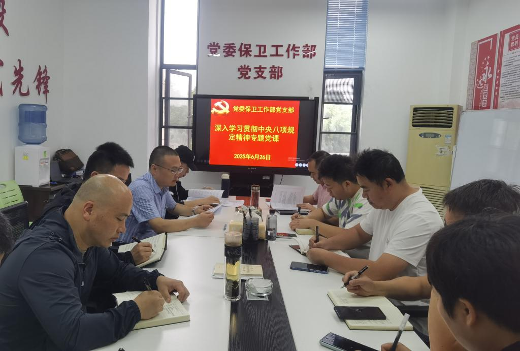 党委保卫工作部党支部全体党员参加学习,保卫处管理对象深圳市金地物业管理有限公司项目经理黄元秀列席。