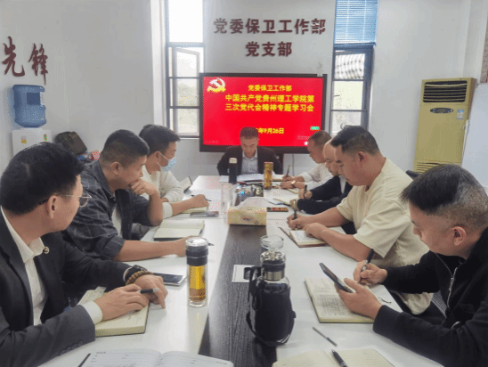 为深入学习贯彻学校第三次党代会精神,9月26日下午,党委保卫工作部党支部在支部会议室召开专题学习会,组织全体党员集体学习党代会工作报告。会议由党支部书记主持。