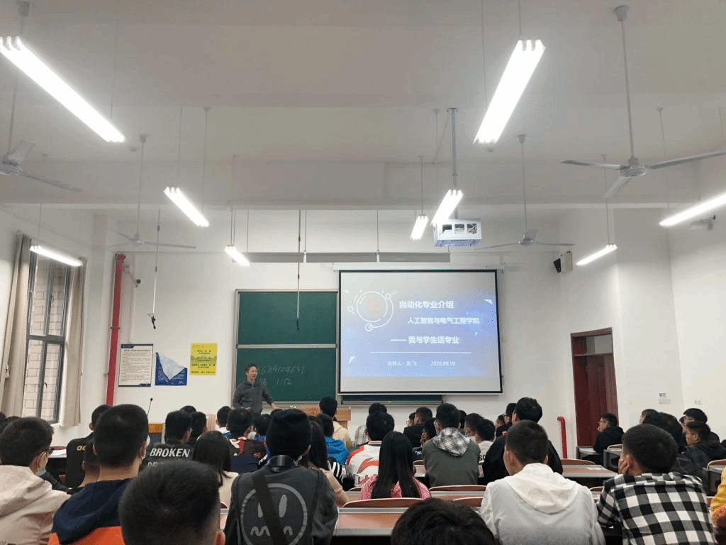 本网讯(人工智能与电气工程学院 张劲松 赵露梅)金秋九月,丹桂飘香。9月19日,我院于贵安校区开展20级自动化专业介绍讲座。我院党总支副书记周新国、20级辅导员沈洁出席讲座,副院长龙飞担任主讲人,全体20级自动化专业新生参加讲座。