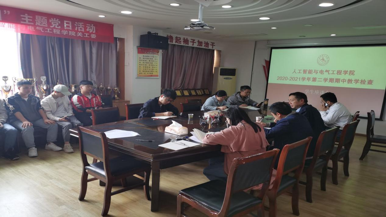 本网讯(人工智能与电气工程学院 )为更好了解学生的学习和生活,更好的倾听学生心声,增进学院与学生之间的交流。我院于2021年5月7日分别在贵安校区和蔡家关校区召开了全院学生班级代表座谈会,两校区学生座谈会同时进行。刘承章书记、龙飞副院长、张均副院长出席会议,并邀请了教务处代表徐波老师为现场指导。学院教学科研科、教研室,实验室以及学生科相关老师参加了本次会议。