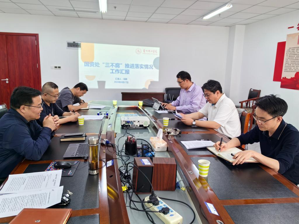 (本网讯 国资处金璐)为扎实推进党风廉政建设,一体推进“不敢腐、不能腐、不想腐”,4月17日下午,党委书记苏向东、党办主任杨再豪一行到国有资产管理处开展“三不腐”推进落实情况工作调研。