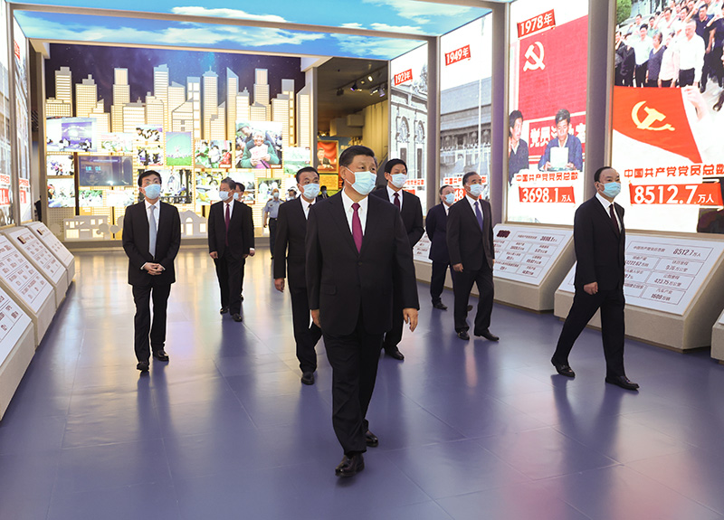 在庆祝中国共产党成立100周年之际,中共中央总书记、国家主席、中央军委主席习近平6月18日前往中国共产党历史展览馆,参观“‘不忘初心、牢记使命’中国共产党历史展览”,并带领党员领导同志重温入党誓词。他强调,党的历史是最生动、最有说服力的教科书。我们党的一百年,是矢志践行初心使命的一百年,是筚路蓝缕奠基立业的一百年,是创造辉煌开辟未来的一百年。回望过往的奋斗路,眺望前方的奋进路,必须把党的历史学习好、总结好,把党的宝贵经验传承好、发扬好,铭记奋斗历程,担当历史使命,从党的奋斗历史中汲取前进力量。要教育引导广大党员、干部通过参观学习,更加自觉地不忘初心、牢记使命,增强“四个意识”,坚定“四个自信”,始终在思想上政治上行动上同党中央保持高度一致,坚定理想信念,学好用好党的创新理论,赓续红色血脉,发扬光荣传统,发挥先锋模范作用,团结带领全国各族人民,更好立足新发展阶段、贯彻新发展理念、构建新发展格局,全面做好改革发展稳定各项工作,汇聚起全面建设社会主义现代化国家、实现中华民族伟大复兴中国梦的磅礴力量。