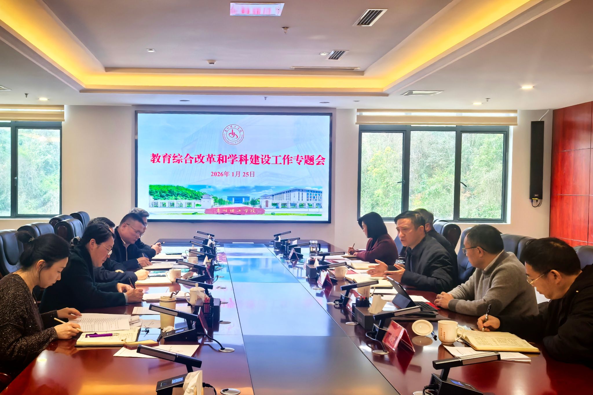 2026年1月25日上午,学校党委书记张大林主持召开教育综合改革和学科建设工作专题会议。校领导潘良明、任洲麒、刘文国、赵芳、李少波、杨鹏、安艳玲、黄名正和党委常委、党委组织部部长金敏出席会议。会议传达学习了省外高水平大学帮扶我省学科建设专题会议精神,研究贯彻落实措施。