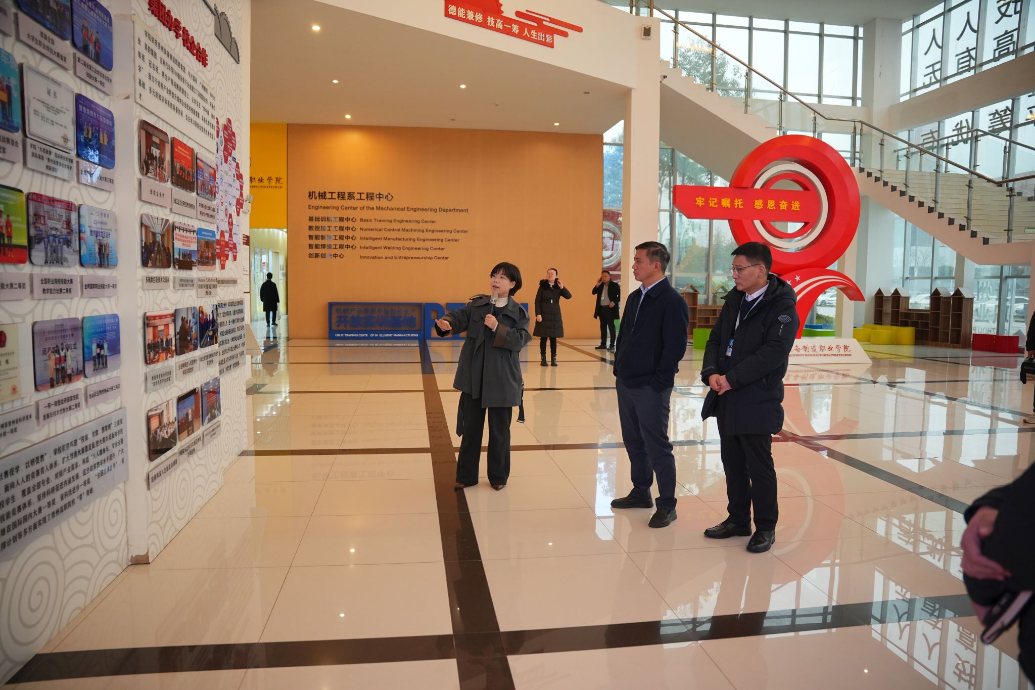 调研组分别参观了贵州装备制造职业学院理想信念基地、智能制造实训基地和贵阳职业技术学院国家级高技能人才培训等基地,与会人员围绕人才培养合作等进行交流。