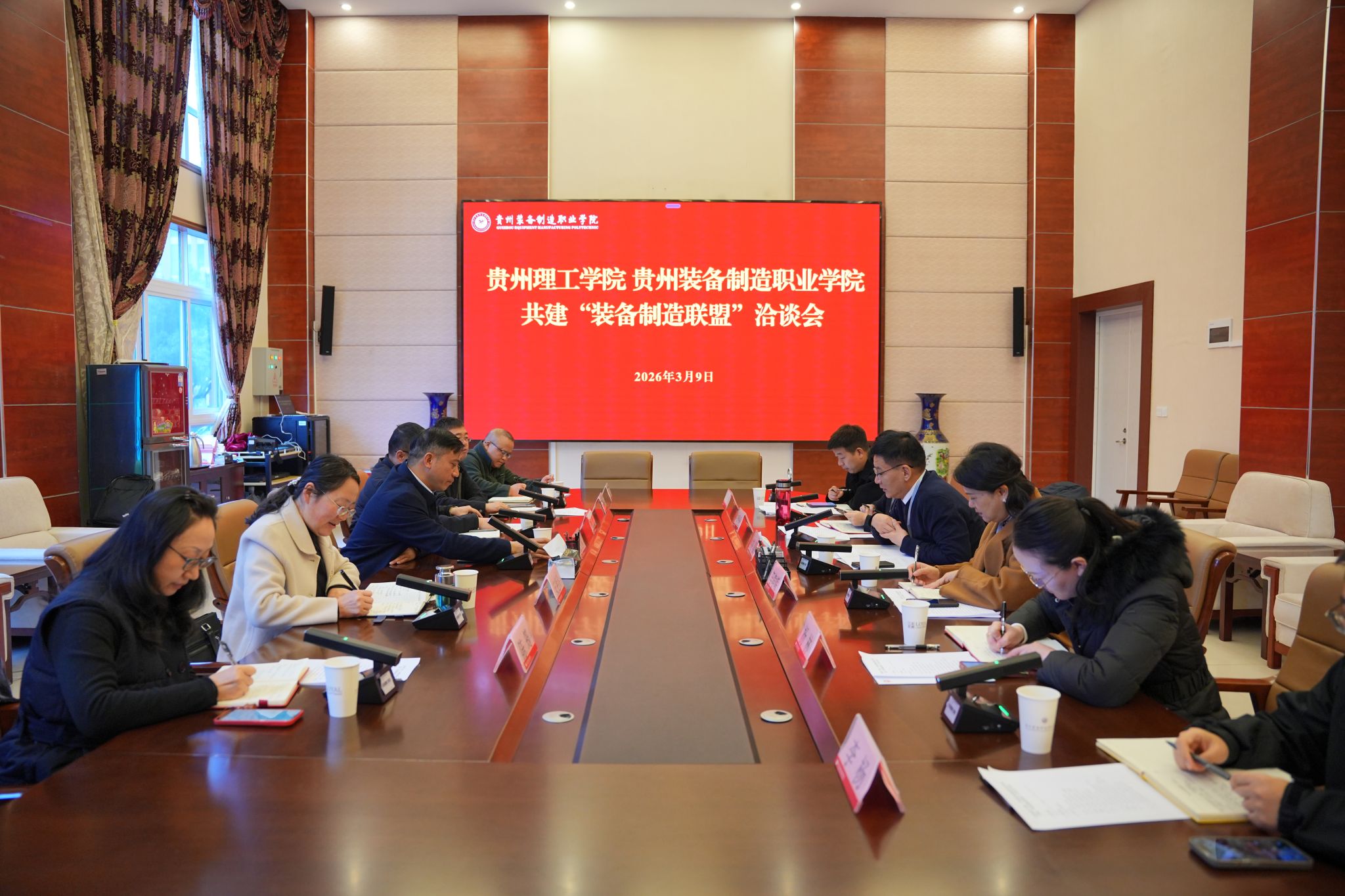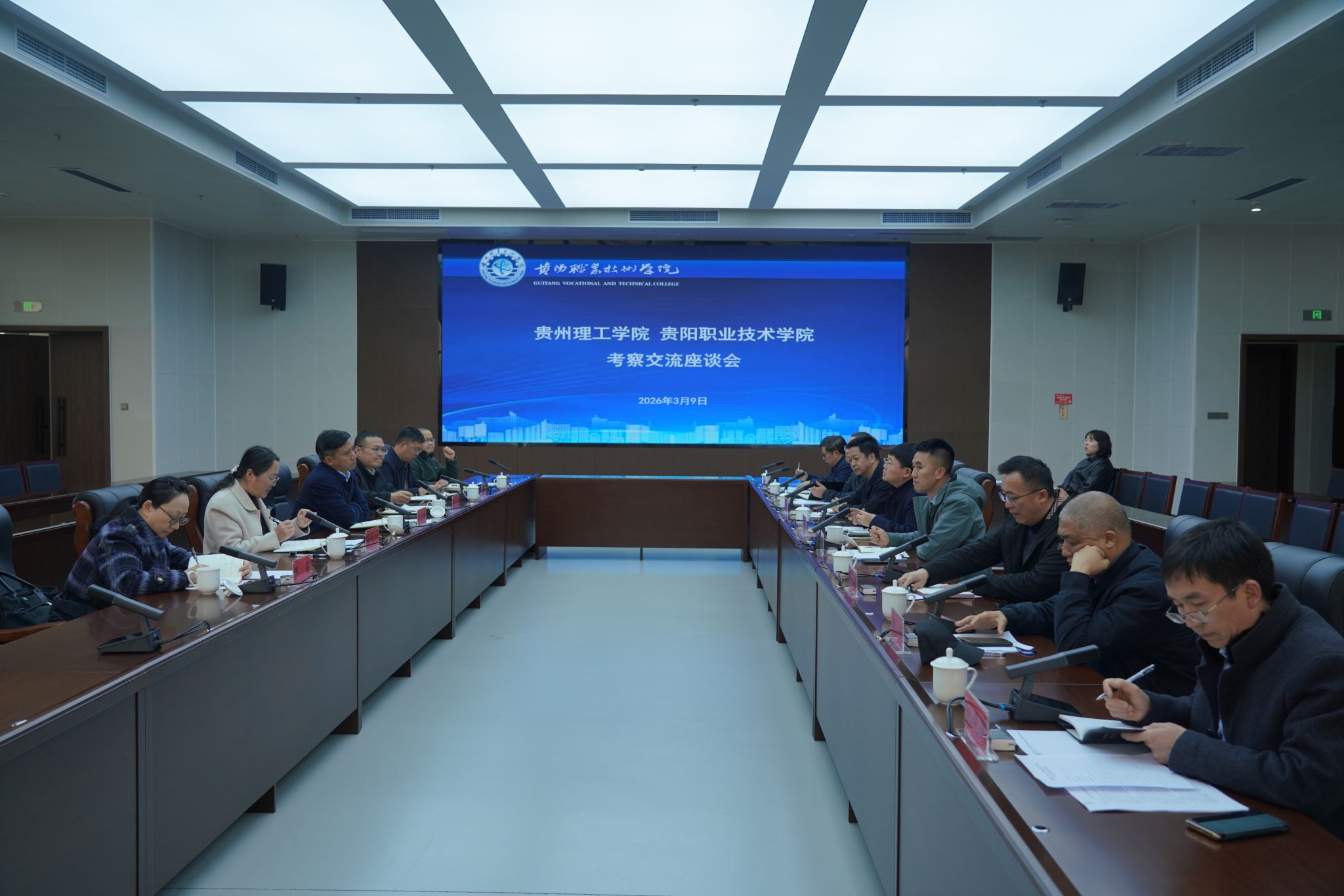 3月9日,校党委书记张大林带队到贵州装备制造职业学院、贵阳职业技术学院调研,推动高校协同发展,专业共建、人才共享,更好服务贵州现代产业体系高质量发展。贵州理工学院副院长杨鹏、安艳玲,贵州装备制造职业学院院长刘渠、党委副书记李峥嵘、副院长李秀丽,贵阳职业技术学院院长李昕昌、副院长王方平出席调研座谈会。