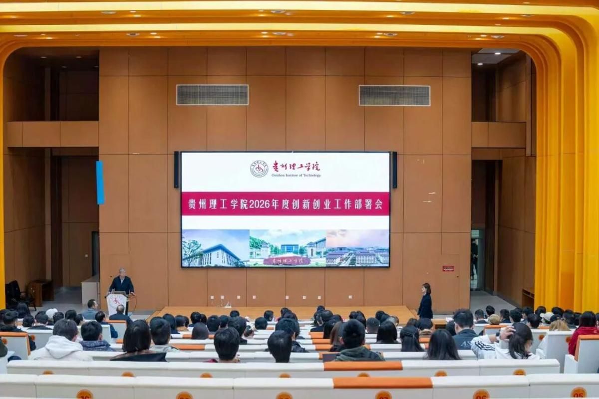 3月26日上午,贵州理工学院2026年度创新创业工作部署会暨中国国际大学生创新大赛专题会议在图书馆多功能厅召开。校领导张大林、潘良明、任洲麒、安艳玲出席会议。贵州大学创新创业学院副院长肇瑾应邀作专题讲座。各学院、相关部门负责人及师生代表参加会议。