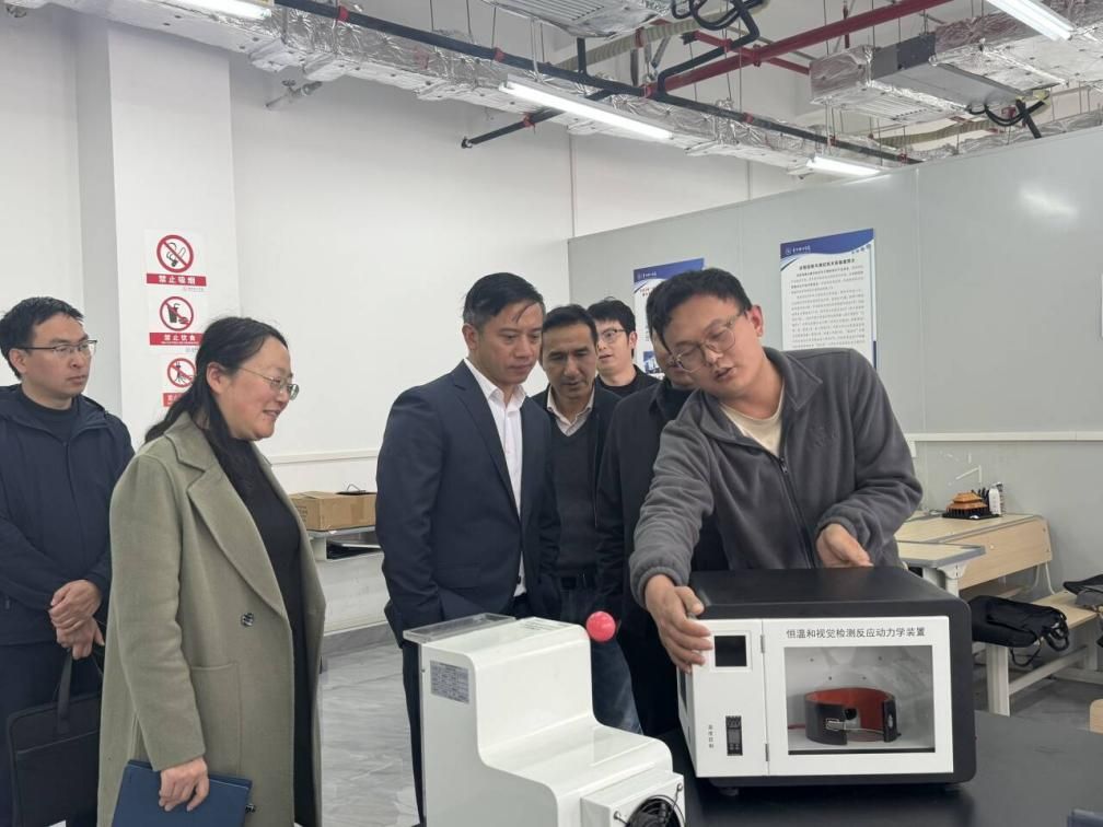 潘良明一行前往酝知楼、睿智楼教学实验室,重点核查危化品暂存、气瓶管理、废弃物处置等工作。他强调,各单位要严格危险源审批流程,完善风险评估机制,压紧压实安全第一责任,持续强化实验过程监管。