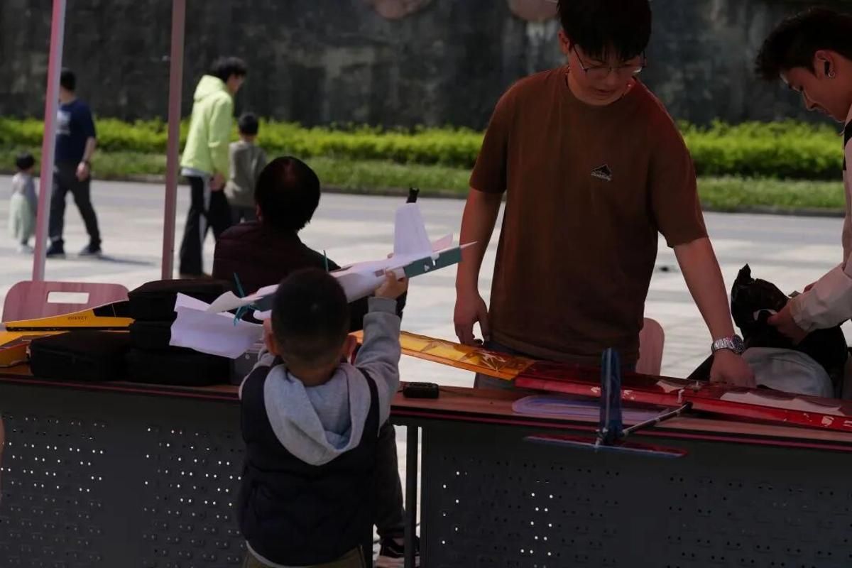 航模展示:志愿者讲解飞行原理,孩子们轻触机身,眼中满是翱翔蓝天的向往。
