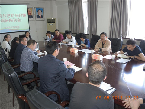 本网讯(马列部 张建军) 2017年5月9日上午,校党委书记曾羽率党委办公室、人事处相关人员到马列部开展调研座谈,会议由马列部主任敖以深主持,全体教师参加了座谈会。