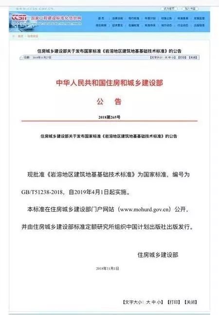 本网讯(宣传部 姚楠)近日,住房和城乡建设部发布2018年第265号公告,由我校宋建波教授作为核心成员参编的国家规范《岩溶地区建筑地基基础技术标准》获批为国家标准,编号为GB/T51238-2018,自2019年4月1日起实施。