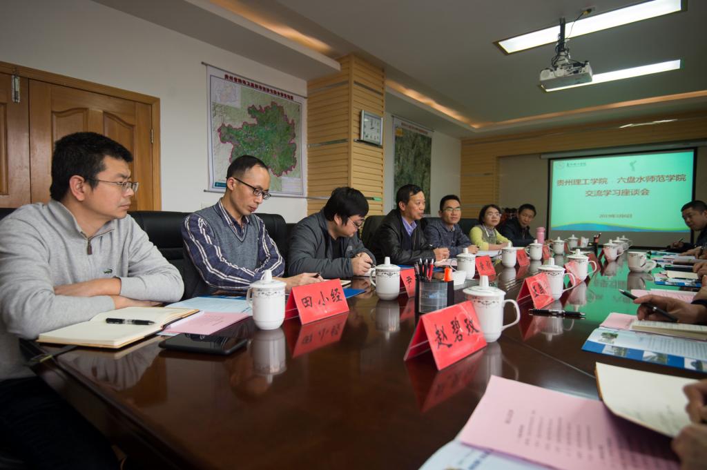 会上,梁杰代表学校对董明建一行的到来表示热烈欢迎,并详细介绍我校基本情况。董明建介绍了六盘水师范学院的基本情况和此行目的。他表示,六盘水师范学院和贵州理工学院作为兄弟院校联系紧密、交流频繁,希望通过此次访问就科研、教学、高层次人才奖励等方面进行交流学习。随后,双方参会人员就经费预算、人才政策、队伍建设和科研教学奖励等方面展开了深入具体的交流。