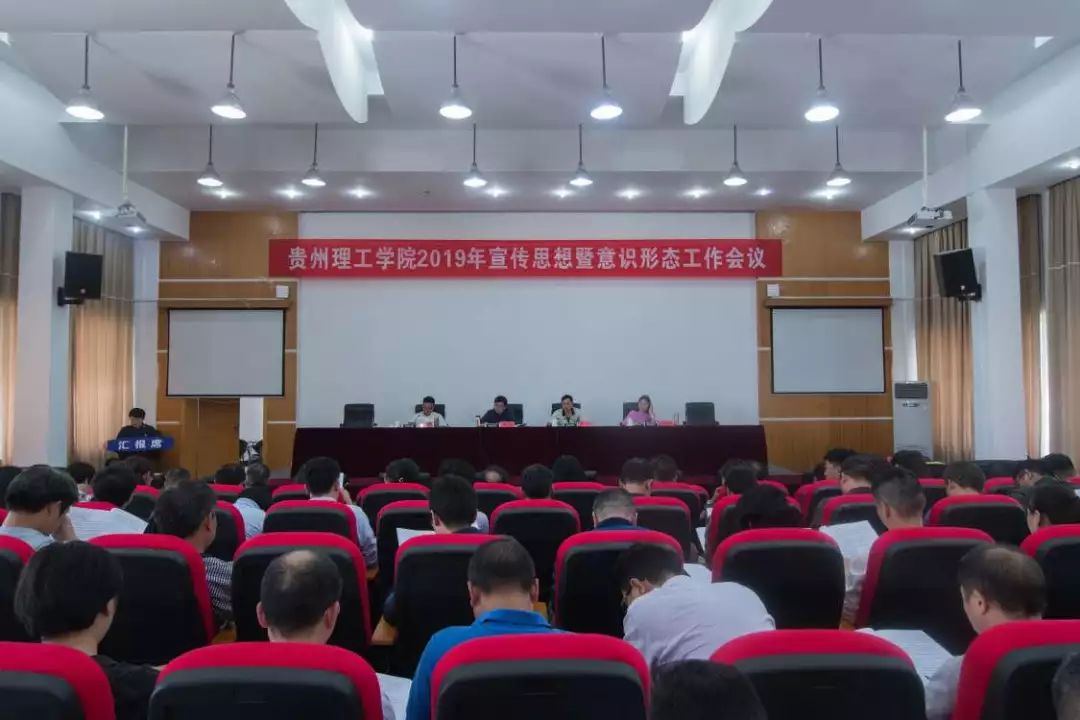 本网讯(党委宣传部 周伟)为深入贯彻落实全国全省宣传思想工作会议精神,进一步加强和改进新形势下学校宣传思想和意识形态工作,为决战决胜本科合格评估提供坚强思想保证,4月24日下午,贵州理工学院2019年宣传思想暨意识形态工作会议在喀斯特报告厅召开,会议对学校年度宣传思想和意识形态工作进行总结和部署,同时表彰宣传工作先进个人和先进集体。校领导曾羽、梁杰、胡兴灿、贺梦依出席此次会议。校党委委员、副院长胡兴灿主持会议。