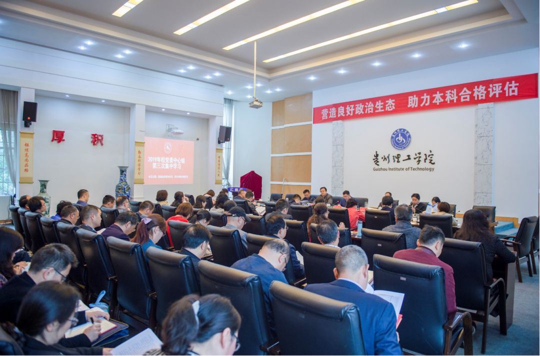 本网讯(党委宣传部 林春燕)为营造良好政治生态,进一步推进落实专家咨询会召开前的各项准备冲刺工作,5月7日,以“营造良好政治生态 助力本科合格评估”为主题的2019年校党委中心组第三次集中学习会在喀斯特会议厅召开。校领导曾羽、梁杰、张波、苏向东、胡兴灿、贺梦依出席会议,校直各部门、各教学(教辅)机构党政主要负责人参加学习。会议由校党委书记曾羽主持。