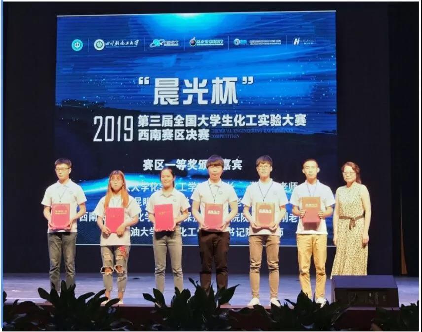 本网讯(化学工程学院 罗孜/文图)7月19日至21日,第三届全国大学生化工实验大赛西南赛区决赛在四川轻化工大学(自贡)举行,经过理论测验、仿真操作、实验实操三个环节的激烈角逐,由我校化学工程学院派出的“GIT02队”荣获一等奖。