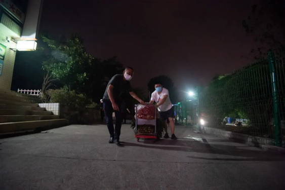 9月8日早上,周伟与寝室就地隔离学生一同转进隔离室,下午7点,在经历多次复查研判后,方解除了隔离。匆匆吃了晚饭,得知有一批物资运送到校需要帮助卸货,周伟摇身一变,成为一名“搬运工”,立刻投入到物资卸载工作中。“我真想把自己变成‘三头六臂’的‘哪吒’!这样什么工作我都能帮上忙,使上力!”谈到常常忙到深夜的繁复工作,周伟笑笑说道。