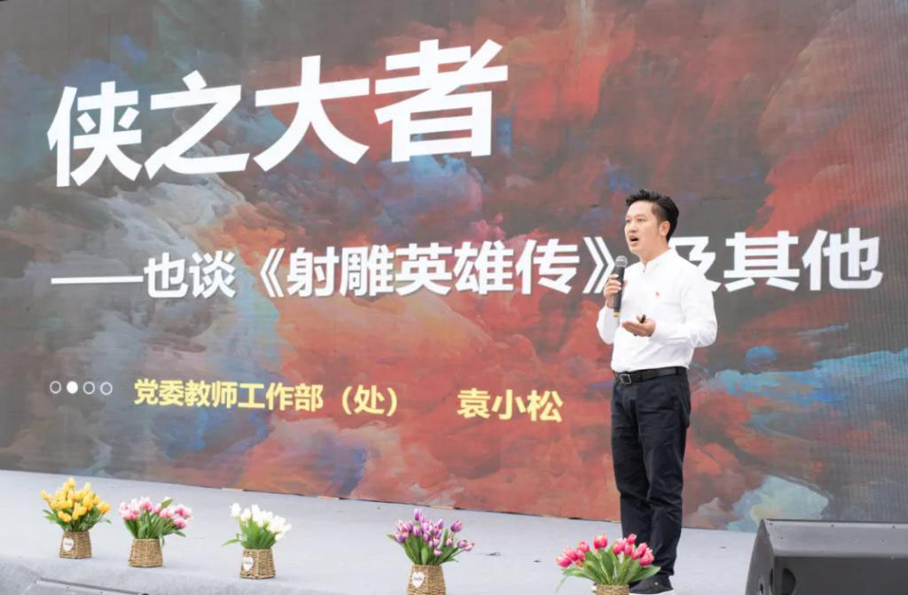 接着,贵州理工学院党委教师工作部(处)袁小松老师为大家作了题为“侠之大者——也谈《射雕英雄传》及其他”的精彩阅读分享。