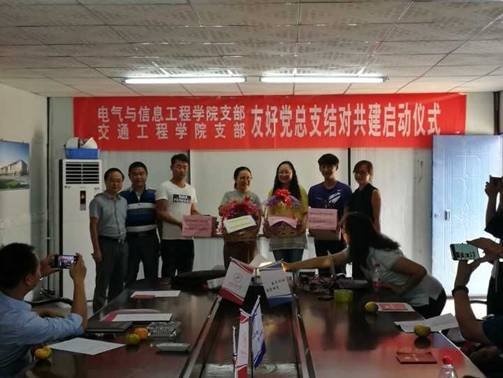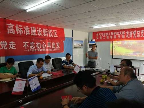 3、交通工程学院教工支部与电气与信息工程学院教工支部在新校区建设指挥部同志的见证下举行了友好党支部结对共建启动仪式,双方支部书记签订了共建责任书,两个学院党支部将遵循“优势互补、资源共享”的原则,相互学习、相互促进,充分发挥党支部的战斗堡垒作用;