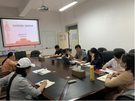 党总支书记仇念华以“对比中西方制度,重温党史故事”为题,先对西方的社会制度进行了分析,指出其局限性,再呈现了中国特色社会主义制度,体现后者的优越性,接着从人民立场对两种社会制度的优劣性进行了客观评价,深刻揭示了人民群众是历史的创造者、人民立场是马克思主义政党的根本政治立场等科学论点。最后,仇书记借用习近平总书记“了解历史才能看得远,理解历史才能走得远”的观点,再次向与会人员强调党史学习教育的重要性和必要性。