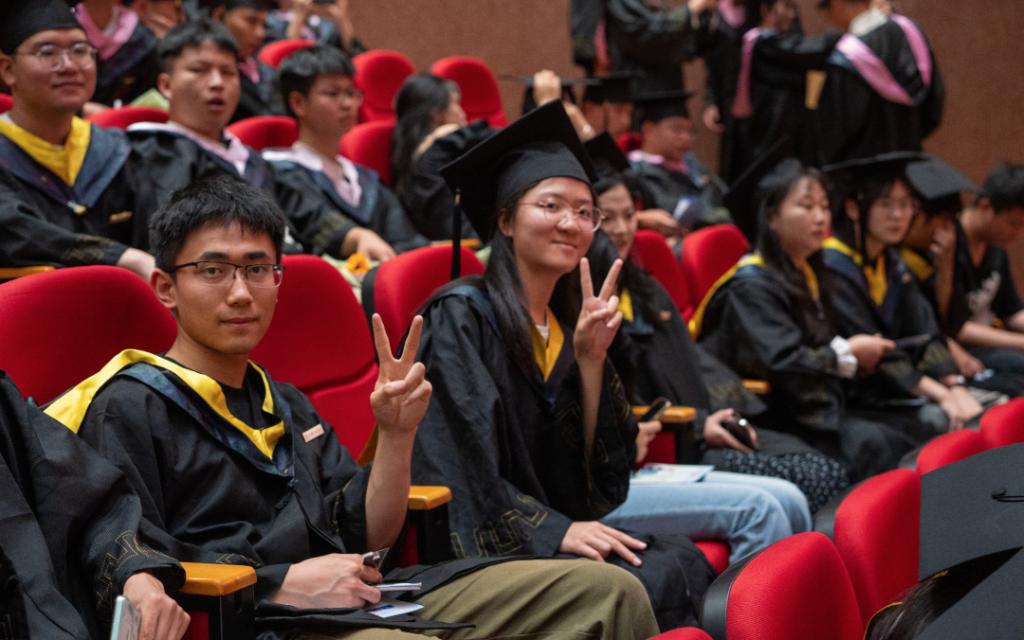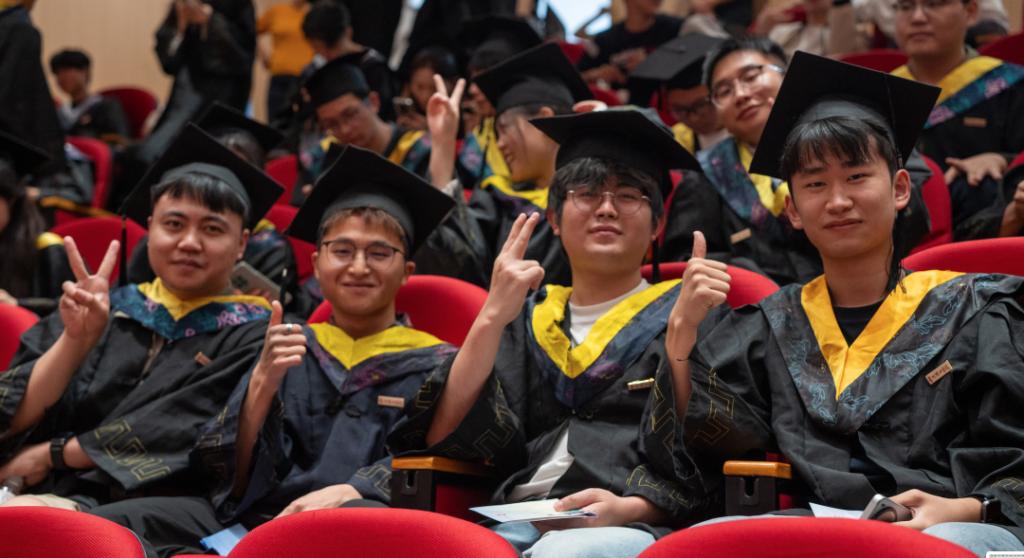 潘良明以校园中无处不在的香樟树为喻,希望同学们如香樟之深根,勤学善思,永葆学习之心;如香樟之常青,永葆热忱,坚守梦想之光。如香樟之挺拔,正直向上,勇担时代之责。如香樟树般俯仰从容,常怀感恩之情与豁达之心;如香樟树般扎根生活的沃土,在风雨中锤炼出坚韧的枝干,让事业的常青藤攀援向上。他深情嘱托同学们在未来的征途中,乘风破浪,勇毅前行,书写无愧于时代、无愧于青春、无愧于人生的壮丽篇章!
