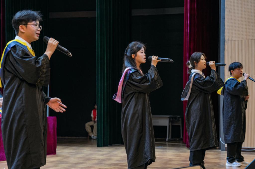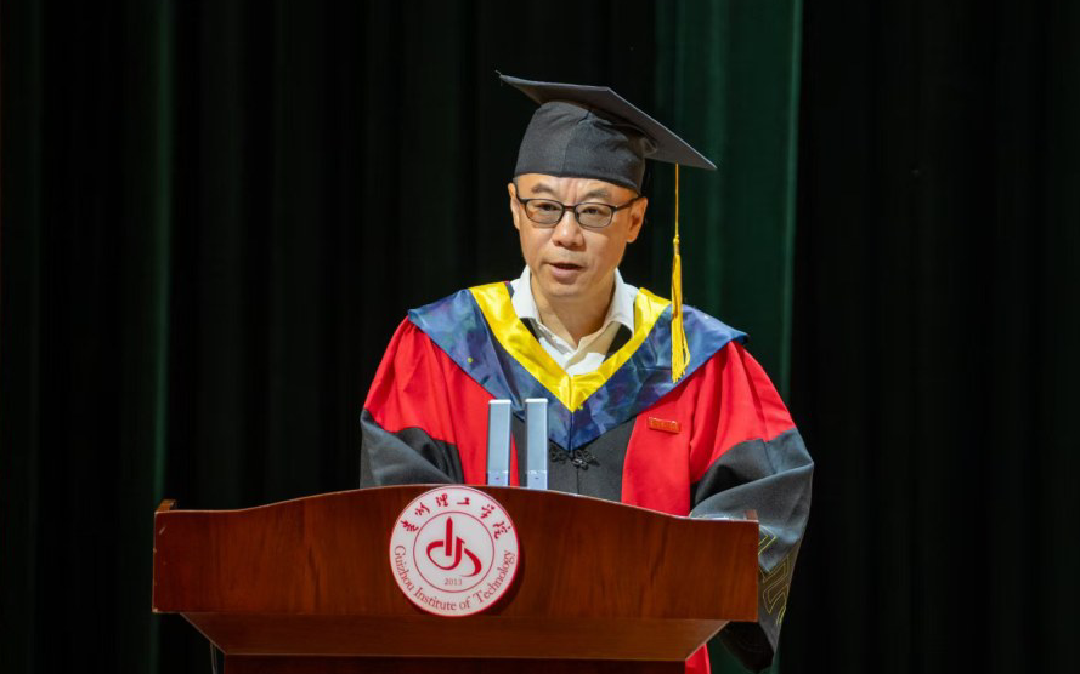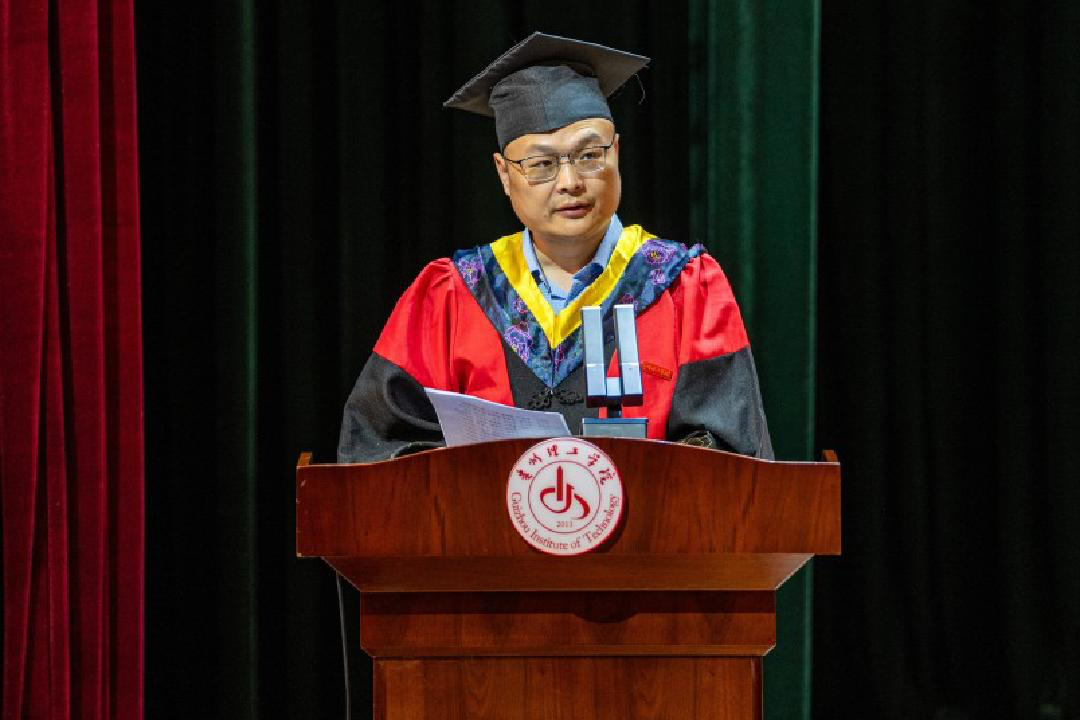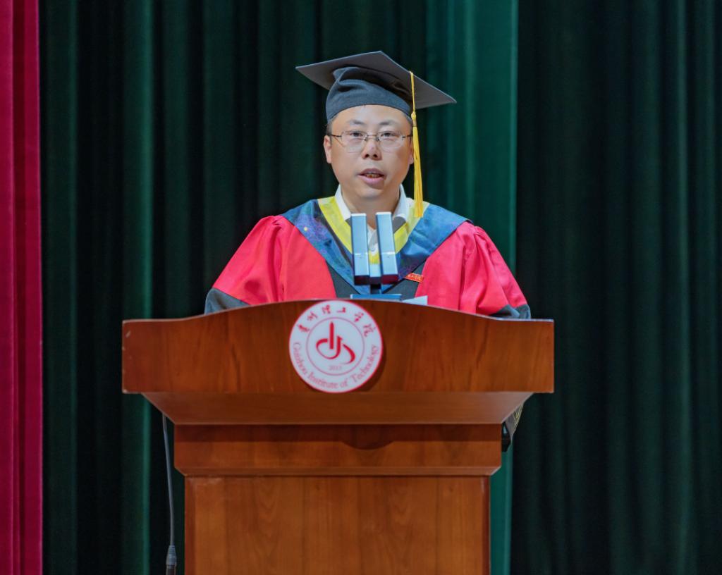 “从此各入人海,各有风雨灿烂。我们,更高处见!”教师代表创新创业中心主任黄名正教授以“求学何用?毕业何往?人生何求?”三问,勉励同学们见天地,见自己 ,在“内卷”中破局,在变化中锚定,以立身为基,向光而行,以温情话语传递母校的牵挂“如果累了,记得母校的灯永远、永远为你们亮着。”