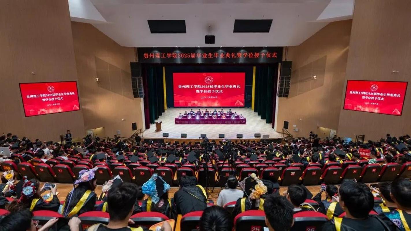 6月27日,贵州理工学院2025届本科生毕业典礼暨学位授予仪式在蕴华楼大礼堂举行。校领导苏向东、潘良明、高勇、任洲麒、李少波、杨鹏、安艳玲、刘占省以及校学位评定委员会委员为毕业生代表一一拨穗颁证,各招生学院领导班子成员、教职工代表及家长代表现场观礼,为2025届毕业生送上最真挚的祝福。