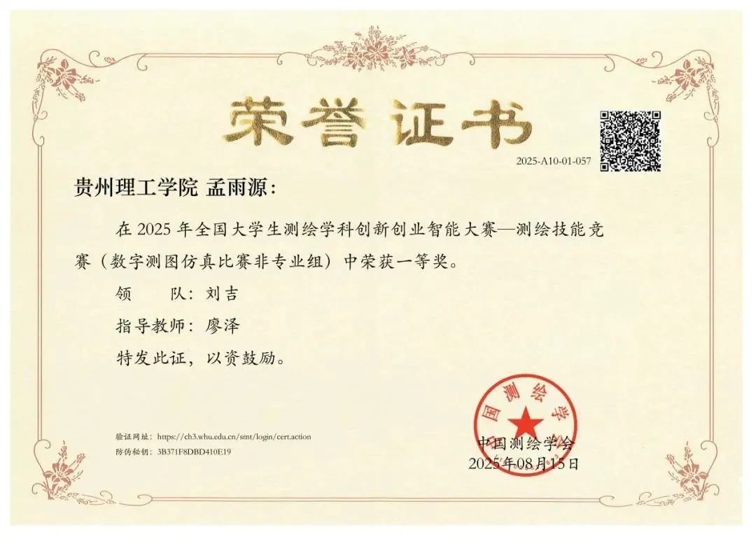 近日,2025年全国大学生测绘学科创新创业智能大赛在内蒙古科技大学落幕。作为首次参赛的队伍,贵州理工学院参赛队从全国近400所高校、7000余名选手中脱颖而出,获一等奖1项、二等奖1项。