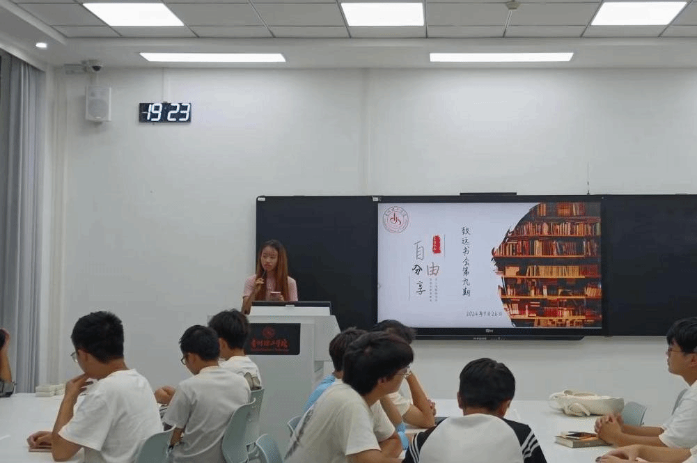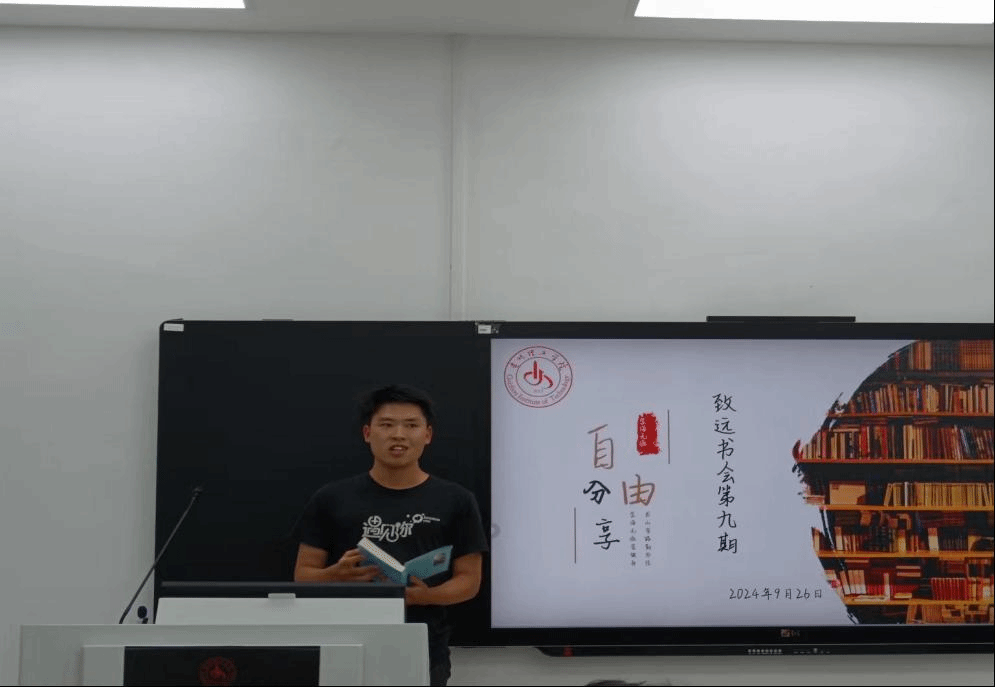 本网讯(土木工程学院 图/吴洋 文/孙月凯 吴洋)为增添大学生读书学习氛围,宣传读书之乐趣、读书之美好,感受书籍之魅力,促进身心全面发展。贵州理工学院致远读书协会(以下简称“书会”)于9月26日周四晚,在天工楼G2311教室开展了“爱生活,读好书”为主题的自由阅读分享会。本次活动由书会成员孙月凯主持,部分书会成员参加。