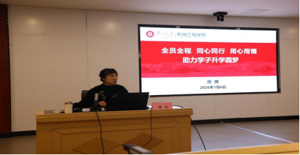 1月6日上午,“对话湖山”学工论坛(第一期)专题讲座在知行楼607报告厅召开,贵州大学机械工程学院党委副书记廖烨应邀作《全员全程 同心同行 用心用情——助力学子升学圆梦》专题分享,校党委副书记任洲麒出席讲座。