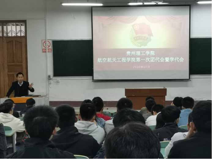 (本网讯 图文/陈玉飞)10月29日中午,航空航天工程学院在蔡家关校区一教召开团学代表会议,选举我院届共青团贵州理工学院团代会、学代会代表。会议由学生科刘松老师主持,学院党总支书记李青出席会议,17级、18级、1920级各班学生代表参加本次会议,校团委组织部工作人员负责纪检监察