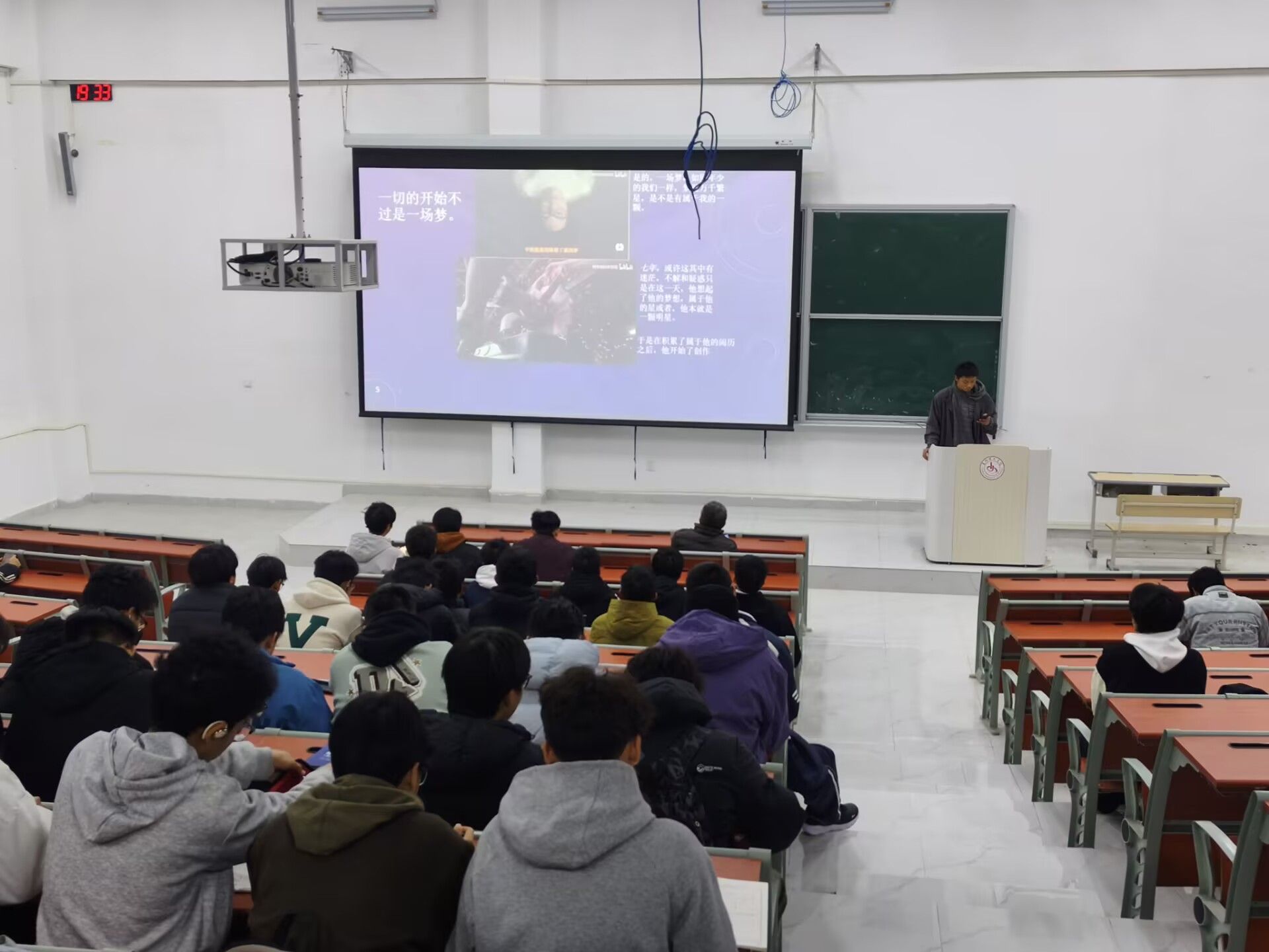 本报讯(图/丁建军 文/胡一航、丁建军、廖雪涵) 为弘扬航天精神,普及航天知识,搭建航天科学与校园文化的沟通桥梁,11月18日晚,贵州理工学院航空航天工程学院在学院楼讲堂成功举办以“银幕上的星辰大海”为主题的航天电影交流沙龙。来自学院三个班级的20余名学生齐聚一堂,在经典影片的光影流转中,探寻航天科技的奥秘,感悟宇宙探索的人文情怀。
