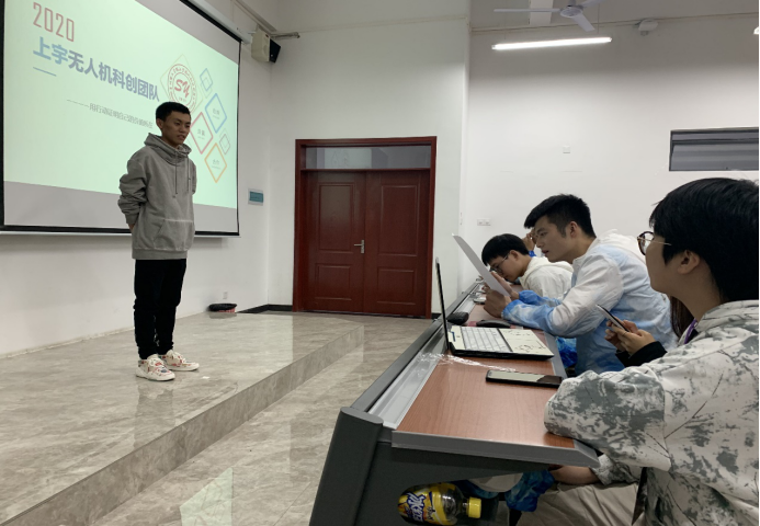 (本网讯 图/陈玉飞 文/赵益奇)2020年10月11日晚,航空航天工程学院上宇无人机科创团队在贵安校区开物楼G1107教室针对2020级新生开展招新面试,18级队员陈玉飞、19级负责人赵益奇、团队部分成员以及大一新生参加本次活动,现任团队负责人刘洋主持。