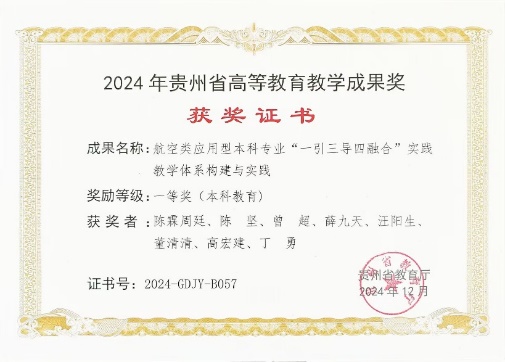 14.荣获贵州省高等教育教学成果奖一等奖(2024年)、贵州理工学院教学成果奖特等奖(2024年)。