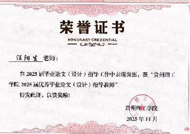 6.2026年,入选贵州省高层次人才培养支持工程科技创新领域青年拔尖人才。