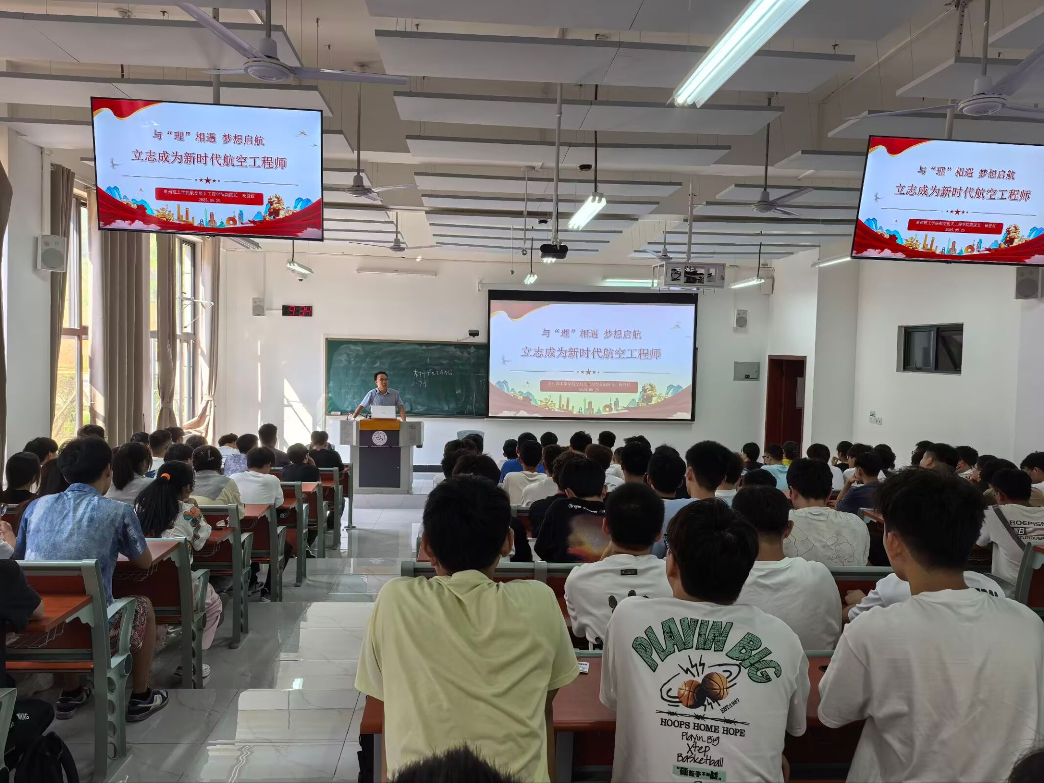 学院党总支书记李青首先作题为《坚定理想信念,担当空天使命》的主题发言。他从三个方面展开论述:一是国家安全和战略需求赋予航空航天事业的重大使命,强调新时代航空航天人才应具备的家国情怀和责任担当;二是解读“低空经济”作为当前国家和地方发展新热点的广阔前景,为同学们描绘了未来职业发展的新领域和新机遇;三是围绕“空中航线”背后的大飞机研制和机务维修需求,分析了我国航空航天事业对高素质人才的迫切需求。李书记勉励新生树立远大理想,将个人发展融入国家航空事业发展大局。