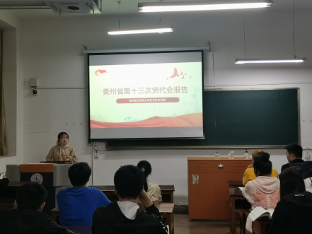 首先,钱庆美对贵州省第十三次党代会召开背景做简要介绍,然后又从贵州省第十二次党代会以来至今过去五年时间的历史性成就和今后五年的总体要求、奋斗目标向同学们作宣讲解读。