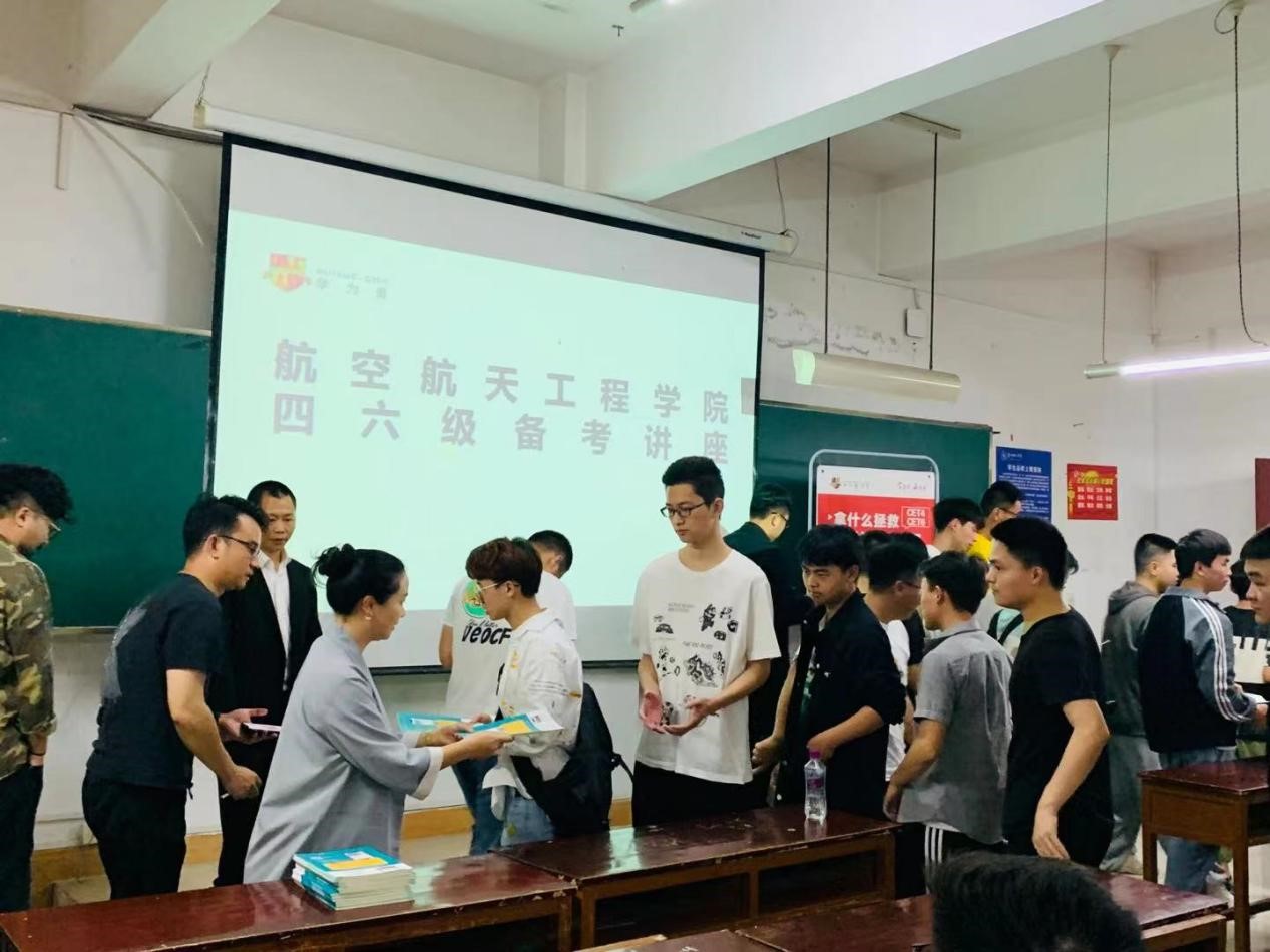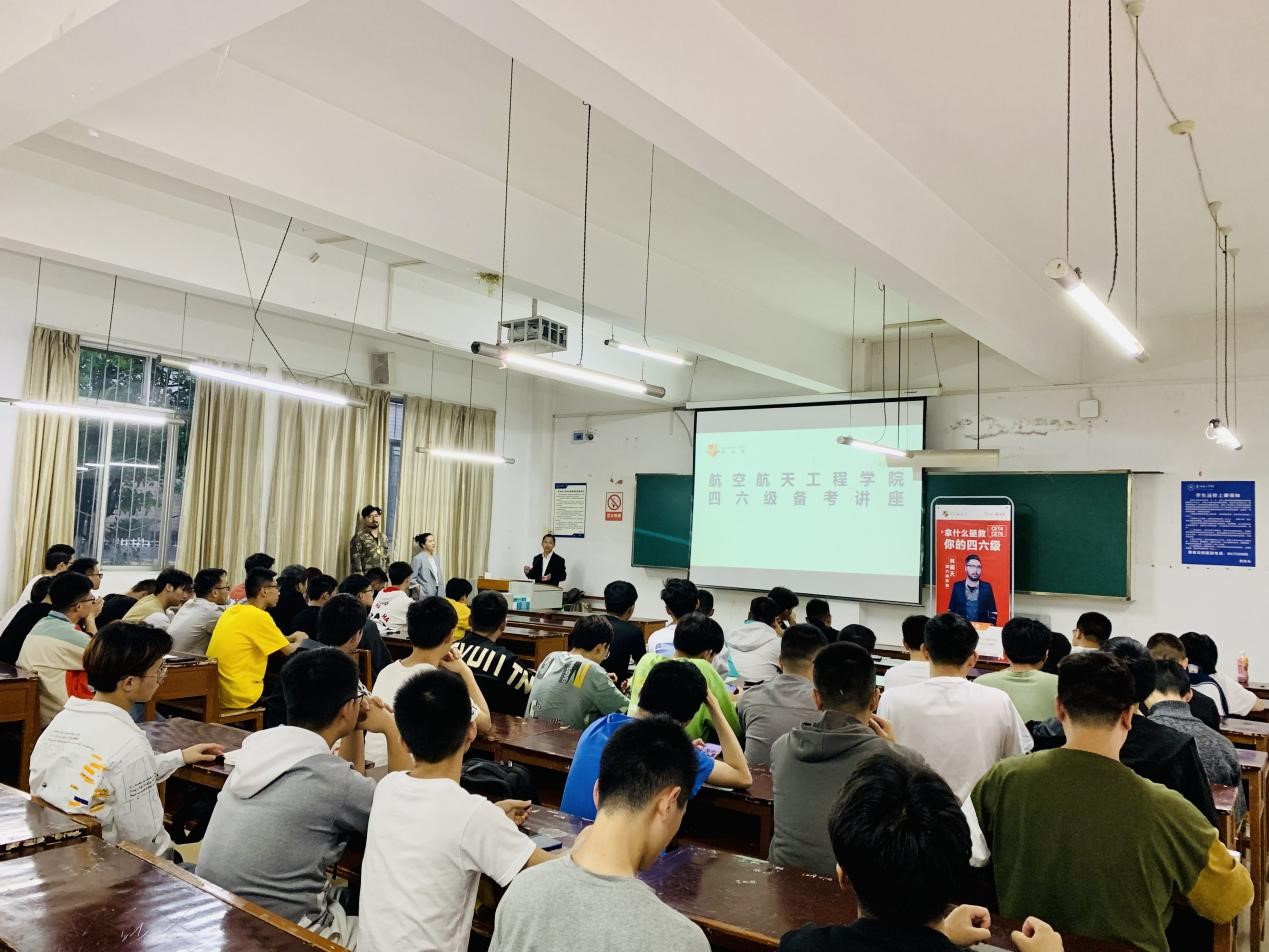 (本网讯 图文/刘松)为了迎接2021年6月份举办的全国大学英语四级考试,航空航天工程学院以全面提升学生英语学习能力和提高英语四级通过率为目标,特邀请贵阳“学为贵”四六级辅导团队,于2021年5月19日,在蔡家关校区3-115D教室召开2019级四六级考试动员会,动员会由航空航天工程学院学生科刘松老师主持,2019级全体同学参加。