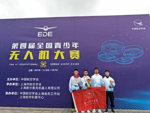 (本网讯 图、文/孙林松)2019年11月29日-12月1日,第四届全国青少年无人机大赛在上海大学宝山校区举行。航空航天工程学院2017级孙林松、田义军等5位同学组成的两支队伍参加了该赛事,分别荣获大学组创意编程赛一等奖、三等奖、团体优秀组织奖,航院薛九天、陈坚老师获优秀辅导员荣誉称号。
