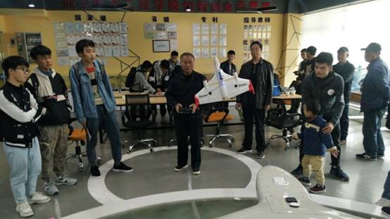 最后,市老科协航模队队长谢老师在实验室里即兴现场表演航模飞行表演,让同学们提前观摩航模的飞行技术。本次培训活动圆满结束。