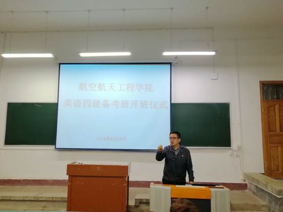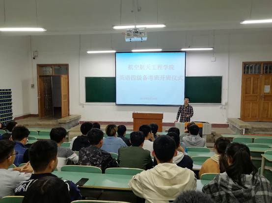 (本网讯 王晓红/文 于茂竹/图)为了帮助同学们更好地备战本学期英语四级考试,2019年3月29日晚,航院2019年上半年英语四级备考班开班仪式在一教112教室召开。航院党总支书记李青、备考班指导老师周老师以及备考班全体同学参加本次开班仪式。辅导员于茂竹老师主持本次开班仪式。