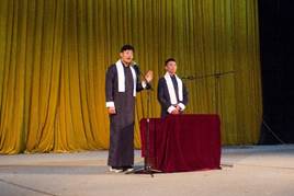 表彰典礼结束后,学院迎新联欢晚会拉开帷幕。晚会由仇兰、许雨淋、宋彬瑶和王星博主持。晚会以一个开场舞引爆全场,带动了现场同学们的心情,将现场的氛围瞬间点燃。随后,台上的同学各显神通,载歌载舞,歌声、吉他声、鼓声,声声动听。相声、话剧也引人入胜。最后,晚会在飞制183班全体同学深情合唱《国家》的歌声中结束。